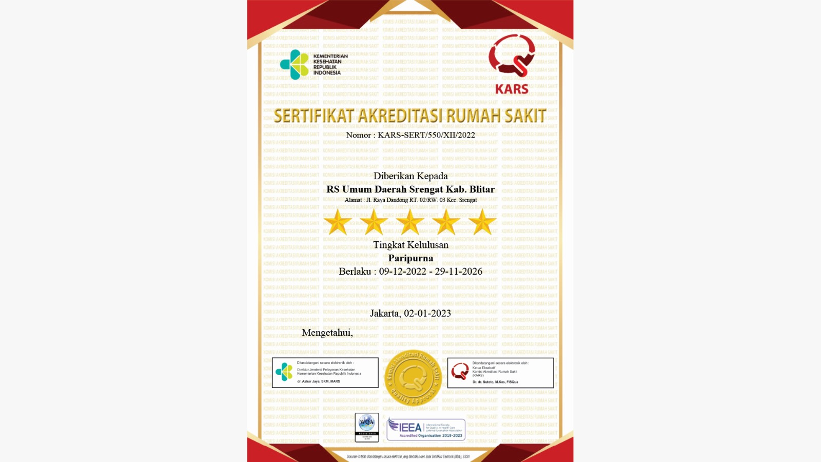 Meraih hasil PARIPURNA pada Akreditasi Tahun 2022 dari KARS Komite Akreditasi Rumah Sakit