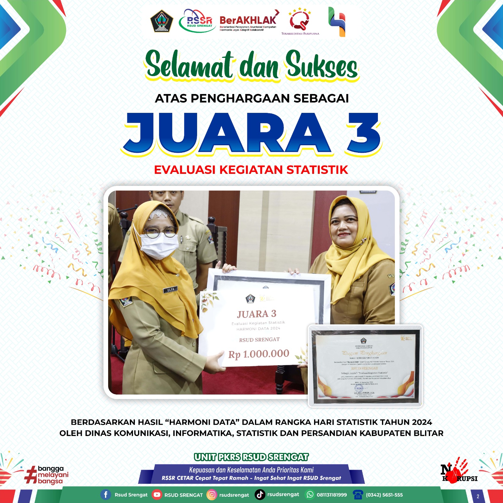 Juara III Evaluasi Kegiatan Statistik Berdasarkan Hasil "Harmoni Data" Dalam Rangka Hari Statistik Tahun 2024