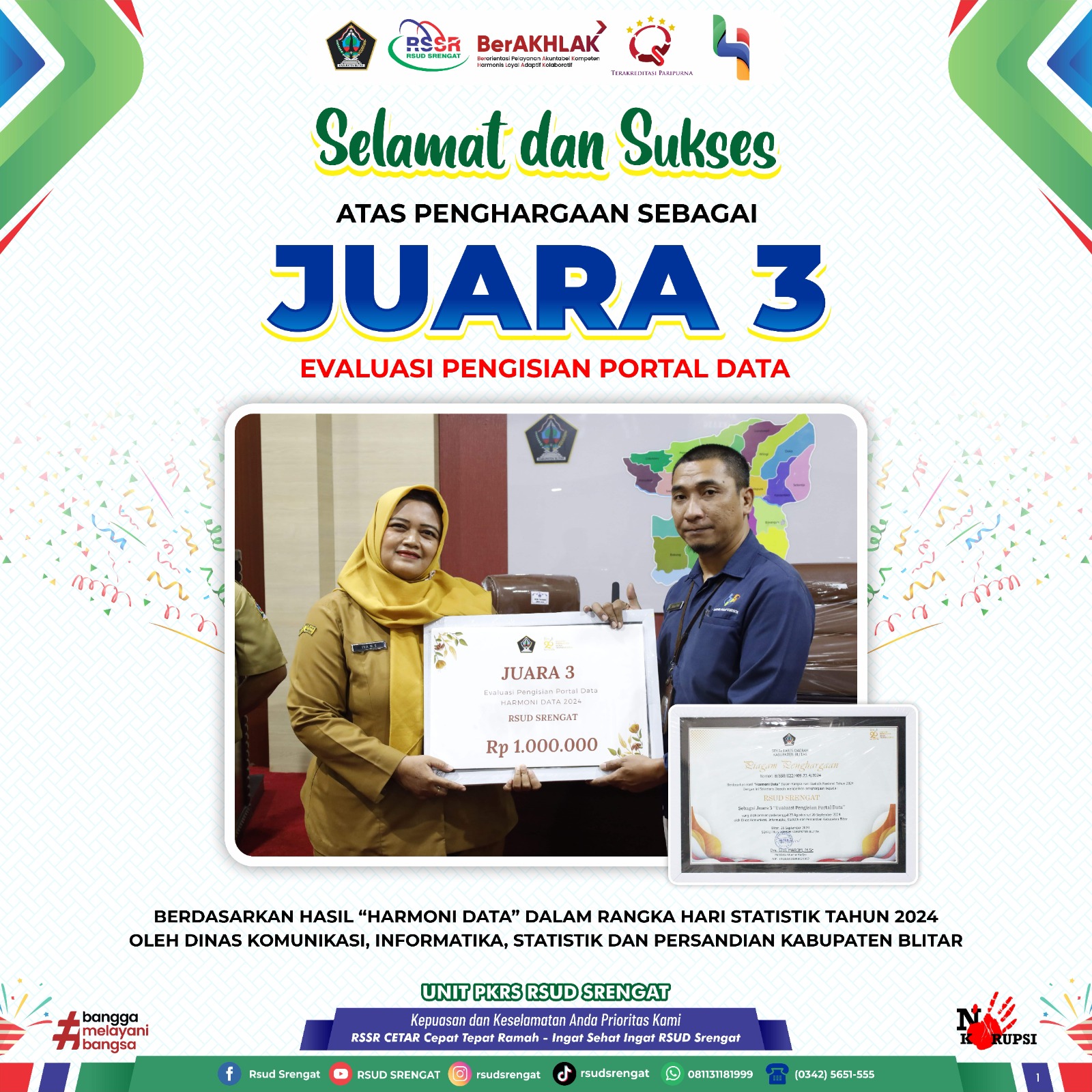Juara III Evaluasi Pengisian Portal Data Berdasarkan Hasil "Harmoni Data" Dalam Rangka Hari Statistik Tahun 2024