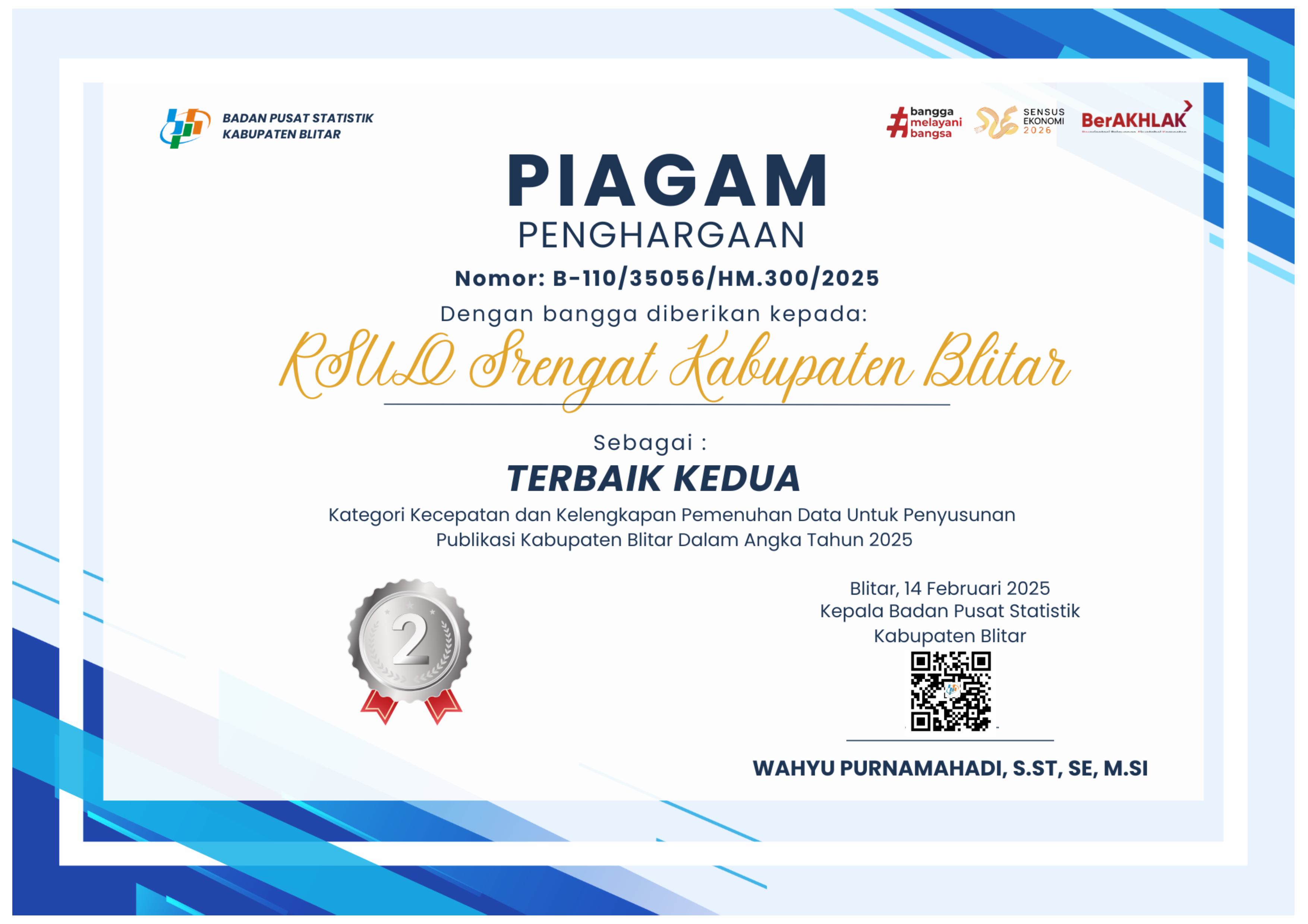 Terbaik 2 Kategori Kecepatan dan Kelengkapan Pemenuhan Data untuk Penyusunan Publikasi Kabupaten Blitar dalam Angka tahun 2025
